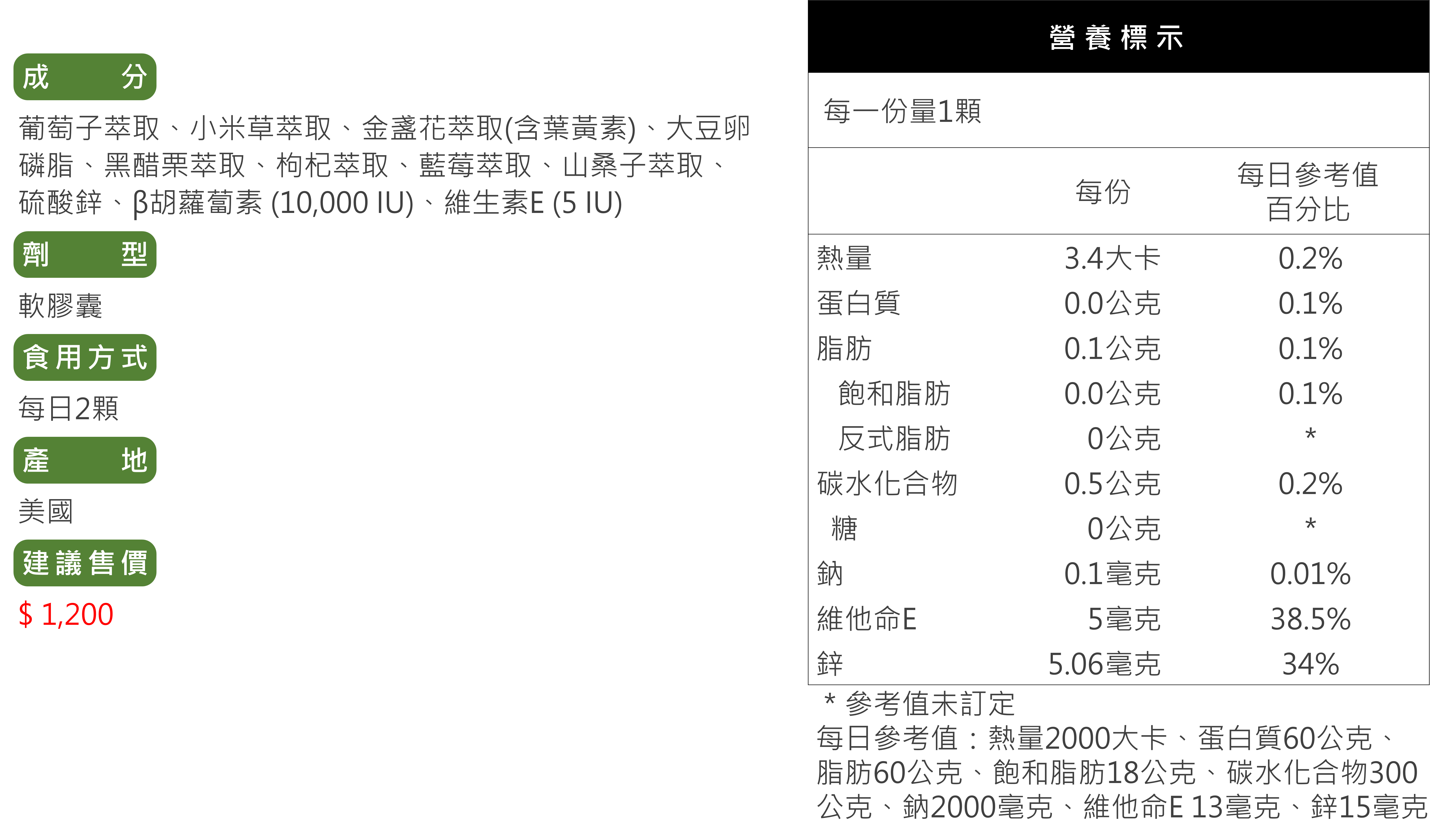 美國進口葉黃素加強複方成份,”明亮”的首選保健品