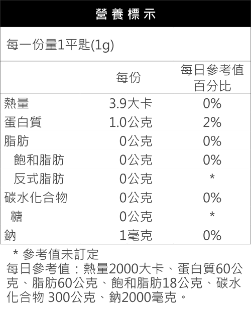 100%天然水解膠原蛋白 粉劑 每天7.5~10g (產品內附一湯匙,一平匙約1g) 分一次或數次食用,直接口服或加入溫開水、果汁、牛奶沖泡飲用 請置放乾燥陰涼處,開封後請於6個月內食用完畢 德國 $1,800 本文圖片來源:素材辞典