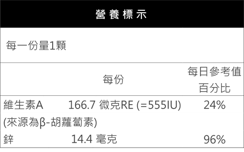 金盞花萃取物(含葉黃素)、柑橘類生物類黃酮、藍莓萃取物、決明子萃取物、雷公根萃取物、HVP螯合鋅、紅藻萃取物(含蝦紅素)、玉米黃素、β-胡蘿蔔素 軟膠囊 成人每日2-3顆,兒童每日1-2顆 存放陰涼處,避免陽光直射 德國 $1,200 本文圖片來源:pixabay