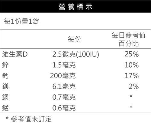 胺基酸螯合鈣、甘胺酸鎂、甘胺酸鋅、葡萄糖酸銅、葡萄糖酸錳、維生素D3