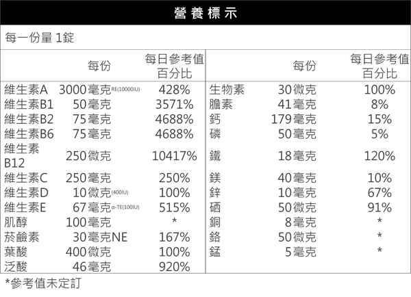 每日1錠,建議白天餐後食用 |
