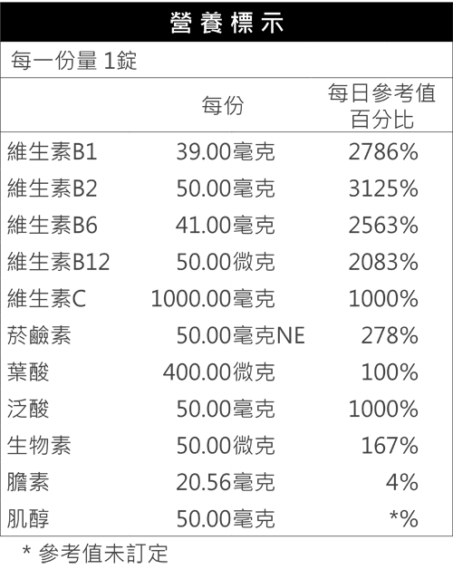 高單位水溶性維生素配方,一天一錠,最佳健康護衛